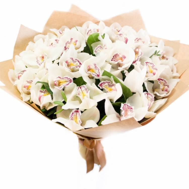 Цветок белой орхидеи символизирует красоту, совершенство, утонченность и великолепие. Букеты из орхидей преподносят с целью выразить свою любовь, очарование и восхищение. Необычные лепестки цветка напоминают экзотических бабочек, делая композицию более яркой и эффектной.